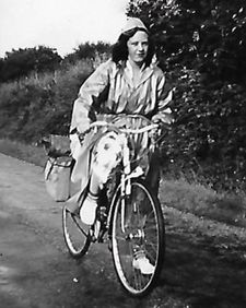 | Gudrun på cykeltur på Langeland. | Gudrun som telefonistinde på tur med to andre telefonistinder. |